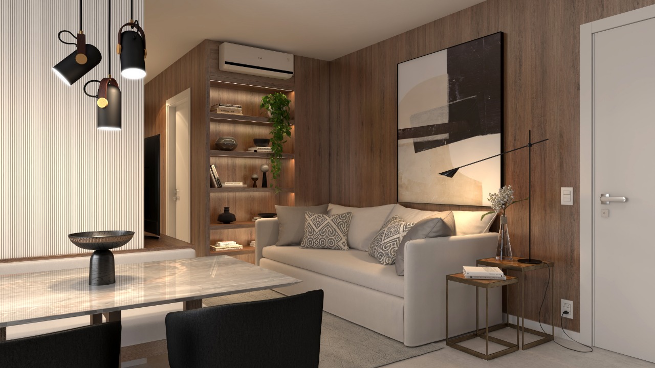 Apartamentos com 3 dormitórios, laje técnica para máquina de ar-condicionado e sacada com churrasqueira. Conta com 01 vaga de garagem.